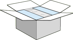 Open the box with the Large Capacity Paper Unit. Cut the tape that holds the cardboard inserts circled in the illustration below.