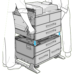 Align each of the printer's corners with those of the unit, then lower the printer until it rests securely on the unit.