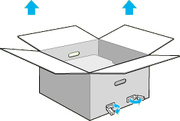 Pull away the four clips from the box, then lift the box up.