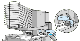 Attach the sheet stopper by inserting its two ends into the holes on the top and bottom bin.