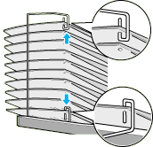 With the orientation shown below, insert the two legs of the top bracket into the side brackets and push down evenly on both sides until the bracket clicks into place.