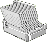If you place the Multibin Unit temporarily on a desk or floor, always keep the bins pointing up as shown below; doing otherwise can damage the unit.