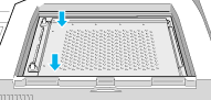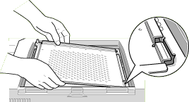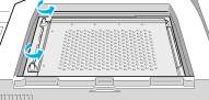 Replace the plate to its original position. Place the two outside tabs of the plate under the edge of the opening with the inside tabs on top of the edge.