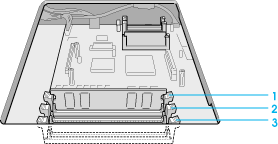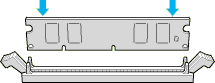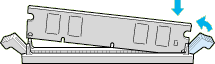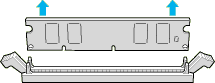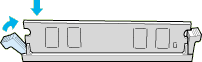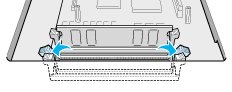 Pull the clips on each side of SLOT S1 or S2 outward to release the memory module.