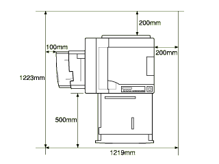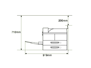 Finisher Stapler adds 900 mm (36 inches) to the top, and 800 mm (31.5 inches) to the right of the printer.