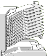 This optional output unit can be used as a mailbox, sorter, multiple sorter, or large capacity stacker. When you specify Stacker mode in the printer driver or SelecType mode, this unit's bins can function as additional output trays in combination with the standard face-down tray. This combination allows you to print 1500 sheets in total.
