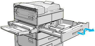 | After that, if the control panel still indicates LC4 or LC5, completely remove lower cassette 3, and pull out both the lower cassette 4 and 5 as far as they will go. |