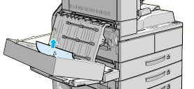 | Carefully remove any paper you find jammed in cover DM. If you cannot find any jammed paper, it may be in another area. |