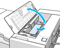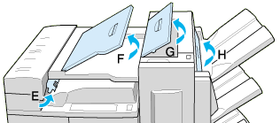 | Lift cover H at the exit side of the Finisher Stapler. |