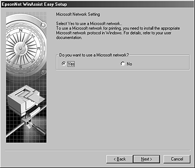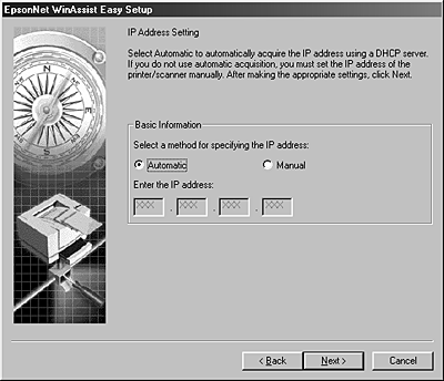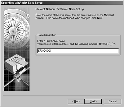 You can also use EpsonNet WinAssist EasySetup to easily configure the print server ready for TCP/IP and Microsoft Network printing within a short time.