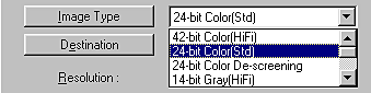 42-bit Color, 24-bit Color, 14-bit Gray, 8-bit Gray, and Black & White.
