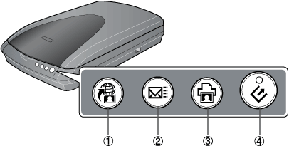The scanner provides four buttons for scanner operations. The Start button also lights up to indicate the scanner's status.