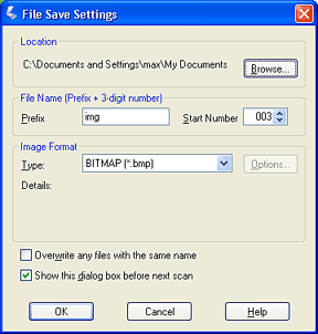 | Specify a location where the scanned images are saved. If you want to change the default location, click Browse (for Windows) or Choose (for Macintosh) and select the desired folder. |