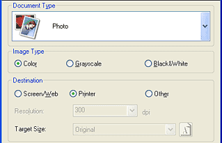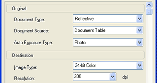 Specify the Document Type, Image Type, and Destination settings to match your images.