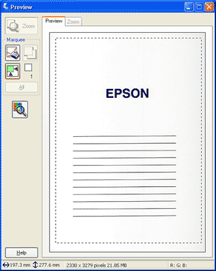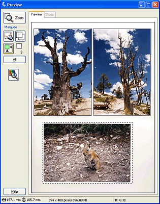 In the Normal Preview window, you can create marquees on the previewed image to select an area you want to scan. For more details, see Using Marquees.