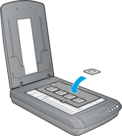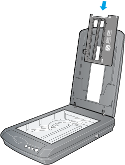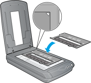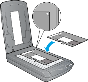 Place the film holder on the document table so that it is aligned with the upper right corner of the document table.