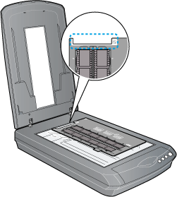 Leave the part of the film holder shown below uncovered; otherwise the colors in your scans will be affected.