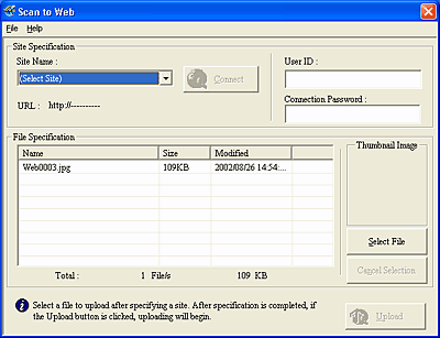 Use this application to scan an image using the PRINT Image Matching technology, and then upload it to the EPSON photo-sharing site. When you launch this application, the image is scanned from EPSON Scan and displayed in the Verify Assistant dialog box. Click Next and the following dialog box appears. Click Upload to upload the image.