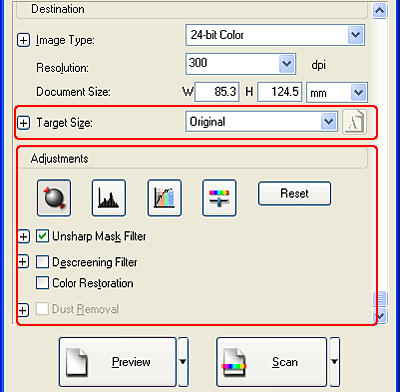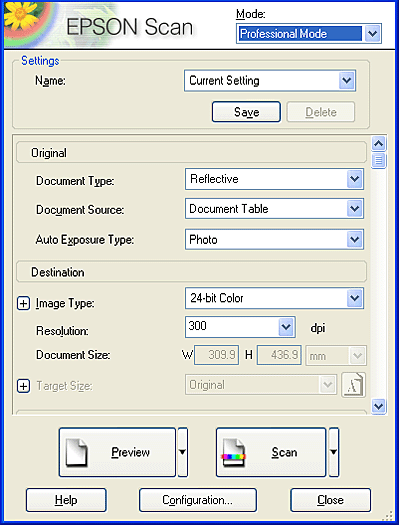 | Start EPSON Scan and then select the Professional Mode. For details on how to select a scanning mode, see Changing a scanning mode. |