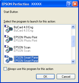 Start button on the scanner starts EPSON Smart Panel as default. You can assign a desired application to the