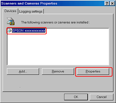 For Windows Me users: Right-click your scanner's icon and select Properties.