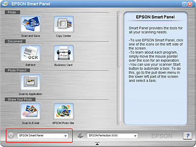 For help on EPSON Smart Panel software, click the question mark at the lower right corner of the window.