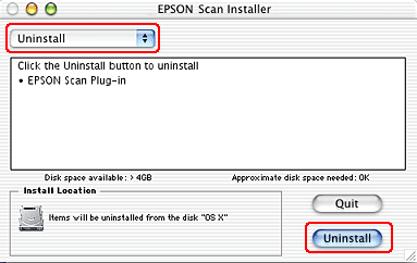 Uninstalling EPSON Scan