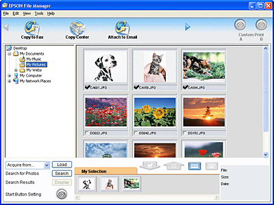 For more information, click Help on the menu bar to view instructions in the EPSON File Manager User's Guide.