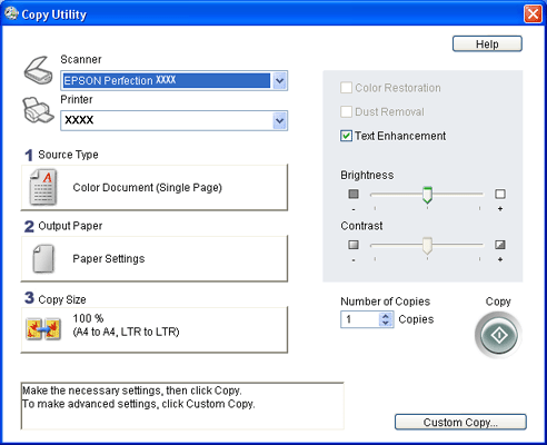 You can use your scanner and printer together to function as a copy machine by launching EPSON Copy Utility.