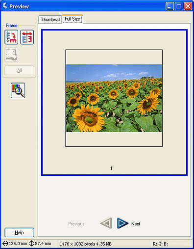 The Normal Preview method allows you to see the entire previewed image and the effects of settings you made, and to make additional image adjustments.