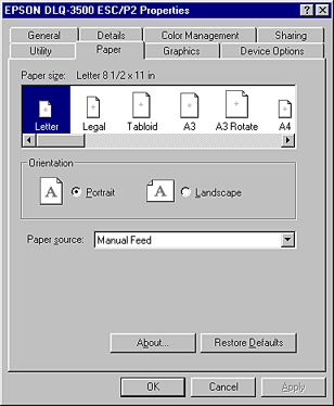 When you finish making printer driver settings, click OK to apply the settings, or click Restore Defaults to return the settings to their default values.