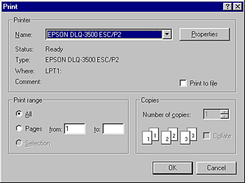 Select Print Setup or Print from the File menu of your application software. The Print or Print Setup dialog box appears.