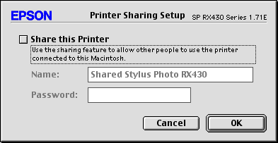 Select the Share this Printer check box, then type the printer name and password information as necessary.