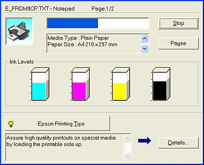 The progress meter dialog box appears automatically when you send a print job to this product. You can check the remaining amount of ink from this dialog box.