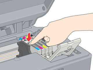 Place the replacement ink cartridge vertically into the cartridge holder, then push the ink cartridge down until it clicks into place.