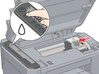Press the Ink button. The print head moves to the ink cartridge replacement position.