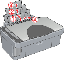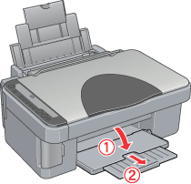 Open the paper support, then slide out the extension, and then open the feeder guard.