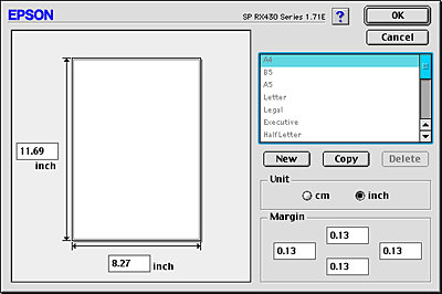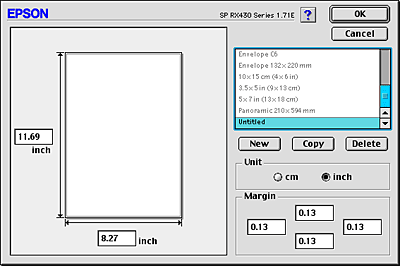 If the appropriate paper size is not included in the Paper Size list in the Page Setup dialog box, follow the steps below to define a new custom paper size.
