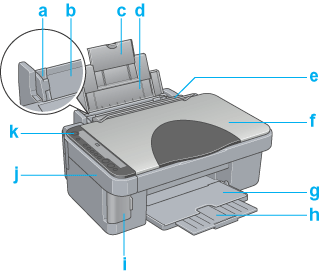 j. Scanner unit: Open and close when you replace an ink cartridge.
