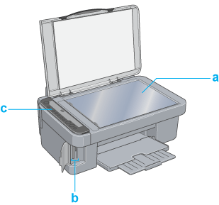 c. Paper support extension: Used to supports larger sized paper in the sheet feeder.