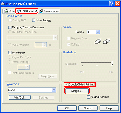 Click the Page Layout tab, then select the Double-Sided Printing check box.