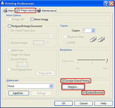 Select the Double-Sided Printing check box. Then, select the Folded Booklet check box.