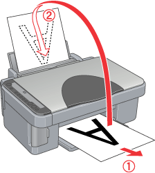 Folded Booklet double-sided printing allows you to make single-fold booklets. To create it, the pages that appear on the outside (after the page is folded) are printed first. The pages that will appear inside the booklet can then be printed after the paper is reloaded into the sheet feeder as shown in the illustration below.